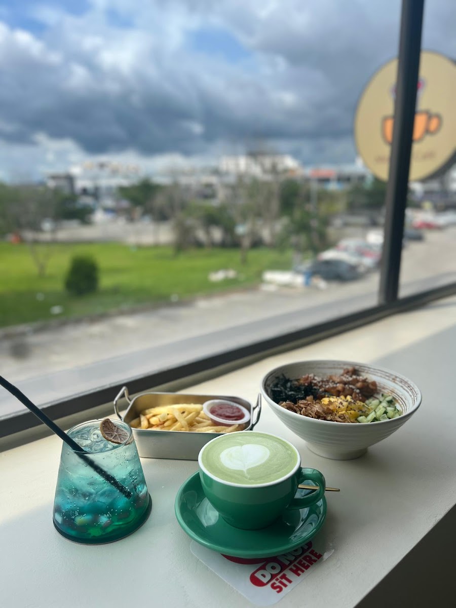 Hygiene first (first enter to the cafe they will sanitize you) friendly staff, they recommended accordingly based on our requirements, cozy environment (aircond on point), nice lighting but the downside is the food selection kinda boring but overall still a good spot for quick bite and play with cats